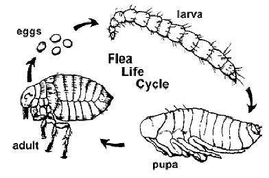 The most convenient flea treatments now involve applying a drop of medicine onto your cats neck once a month. This helps break the fleas breeding cycle as adult fleas only jump on your cat to feed and spend most of their time on the ground as eggs, larvae and pupae. It is important to treat all animals in the house, not just the dog, to break the flea life cycle.